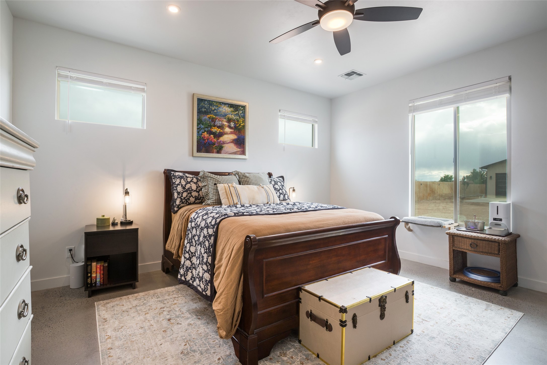 Why buy one house when you can buy two, plus have room to garage up to 8 cars on one generous acre lot with no HOA or PID? The Main Home, with a 3 car garage, was finished in late 2024, and not occupied until 2025. It offers a bright, open layout with polished concrete flooring throughout for a sleek, low-maintenance finish. The kitchen is designed for everyday living AND entertaining - with solid wood cabinetry, gas range, large pantry, and abundant storage. The primary suite is spacious and there are 3 separate additional bedrooms to customize the way you live. The Casita is brand new, never lived in, and the garage has room for 5 cars, or 3 and a workshop, gym, or just ROOM, and boasts a bathroom fit for a Primary Suite! Designed and built for the current owners, a life change means you will get to enjoy all the many features they incorporated! This is the multi-gen Accessory Dwelling Unit (ADU) all your family member's friends will be jealous of, or your guests may never want to leave! It offers its own private living experience with 1 bedroom and 2 baths, a thoughtfully designed kitchen with Black Mist Honed Granite on a large island, a pot filler, beautiful tile backsplash, generous cabinetry, and the option for gas or electric range and dryer. The inviting living space features a fireplace with blower for extra warmth and ambiance. Additional casita highlights include a covered front porch, insulated garage doors, security cameras, a full gutter system, gas BBQ stub out, and RV hookup (including sanitary dump set up), all adding as much comfort as functionality in a truly one-of-a-kind compound in which to live, love work and play!