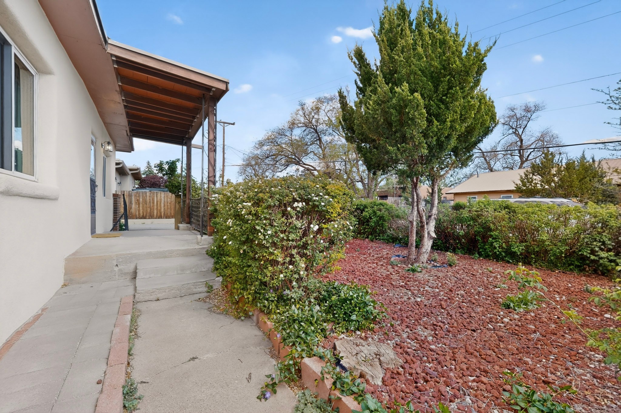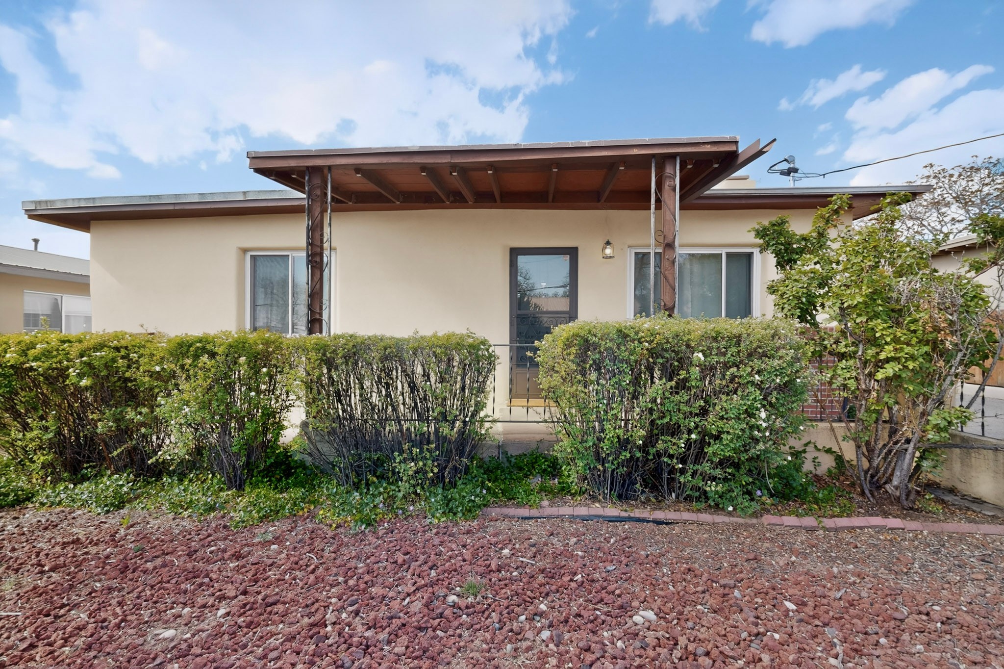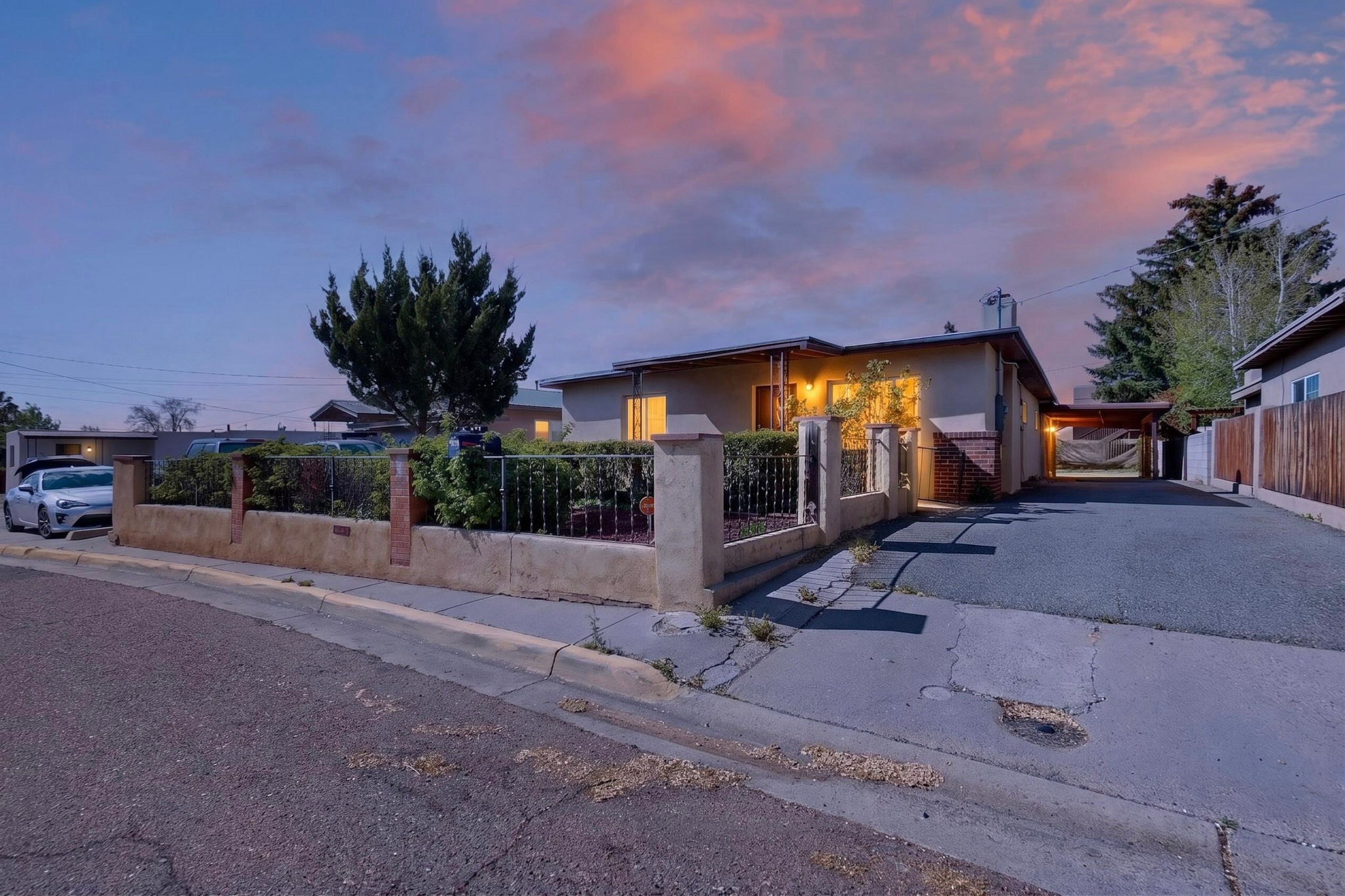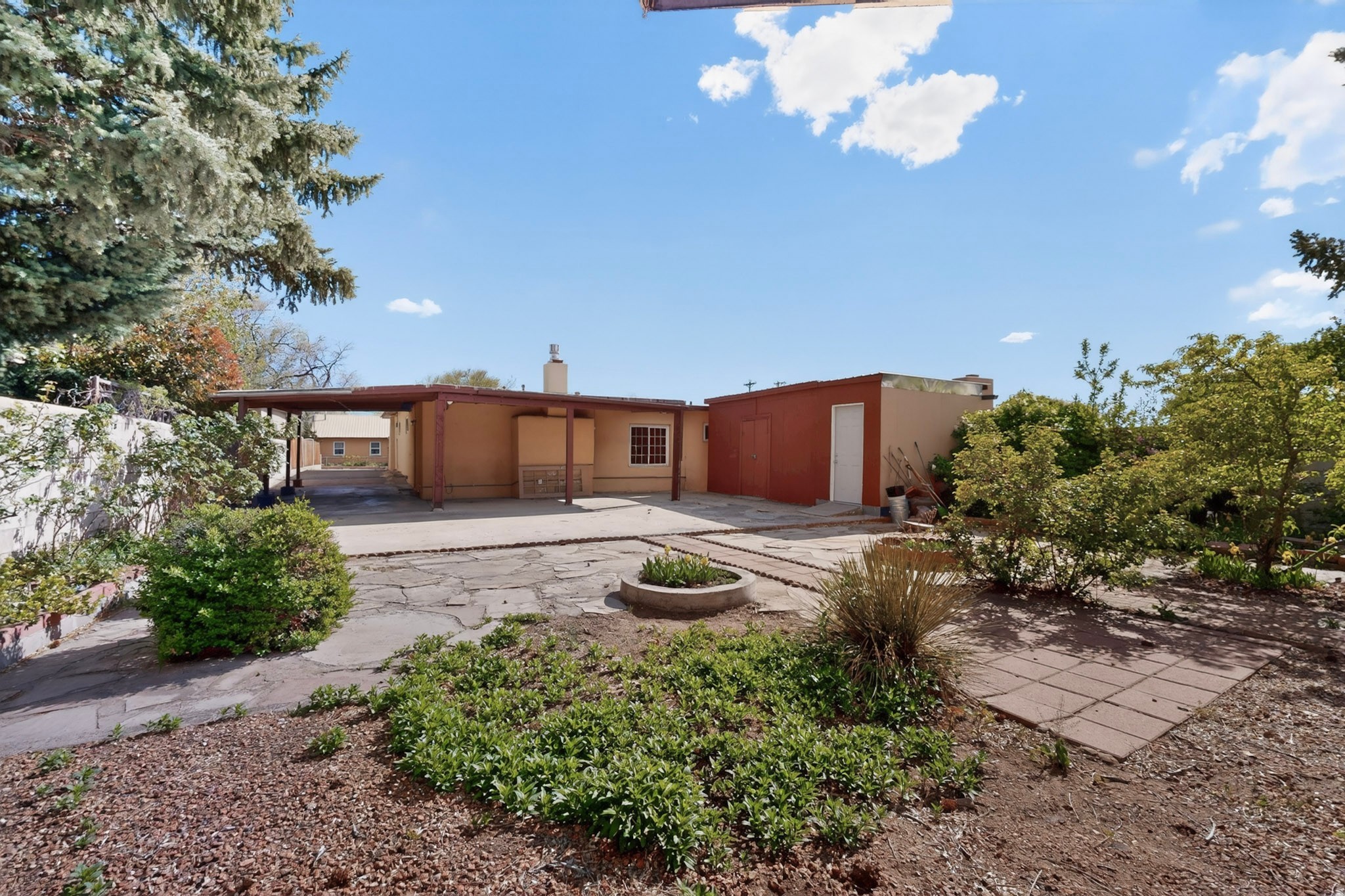Rare opportunity to own a solid in-town adobe home in an established Santa Fe neighborhood on Columbia Street near St. Francis. This home offers 3 bedrooms and 2 bathrooms, combining classic charm and flexible living spaces. The home features beautiful hardwood floors, updated 200-amp electrical service, and laundry hook-ups for a gas dryer. A spacious addition with bath can serve as a primary suite, guest suite, family room or art studio. Set on a generous lot, the property includes fully fenced front and back yards, with mature landscaping including lilacs, roses and drought resistant spiraea bushes. The backyard offers a covered area perfect for entertaining and outside dining. There is also a detached workshop/garden shed ready for electrical upgrade, along with an additional storage unit. The neighborhood is welcoming, with long-term residents and a strong sense of community. Walk to Trader Joe's, Clafoutis, Salvador Perez Park and nearby medical, dental and veterinarian offices from this central location. This is a clean, solid, adobe home with timeless character and exceptional potential in a highly desirable in-town setting.