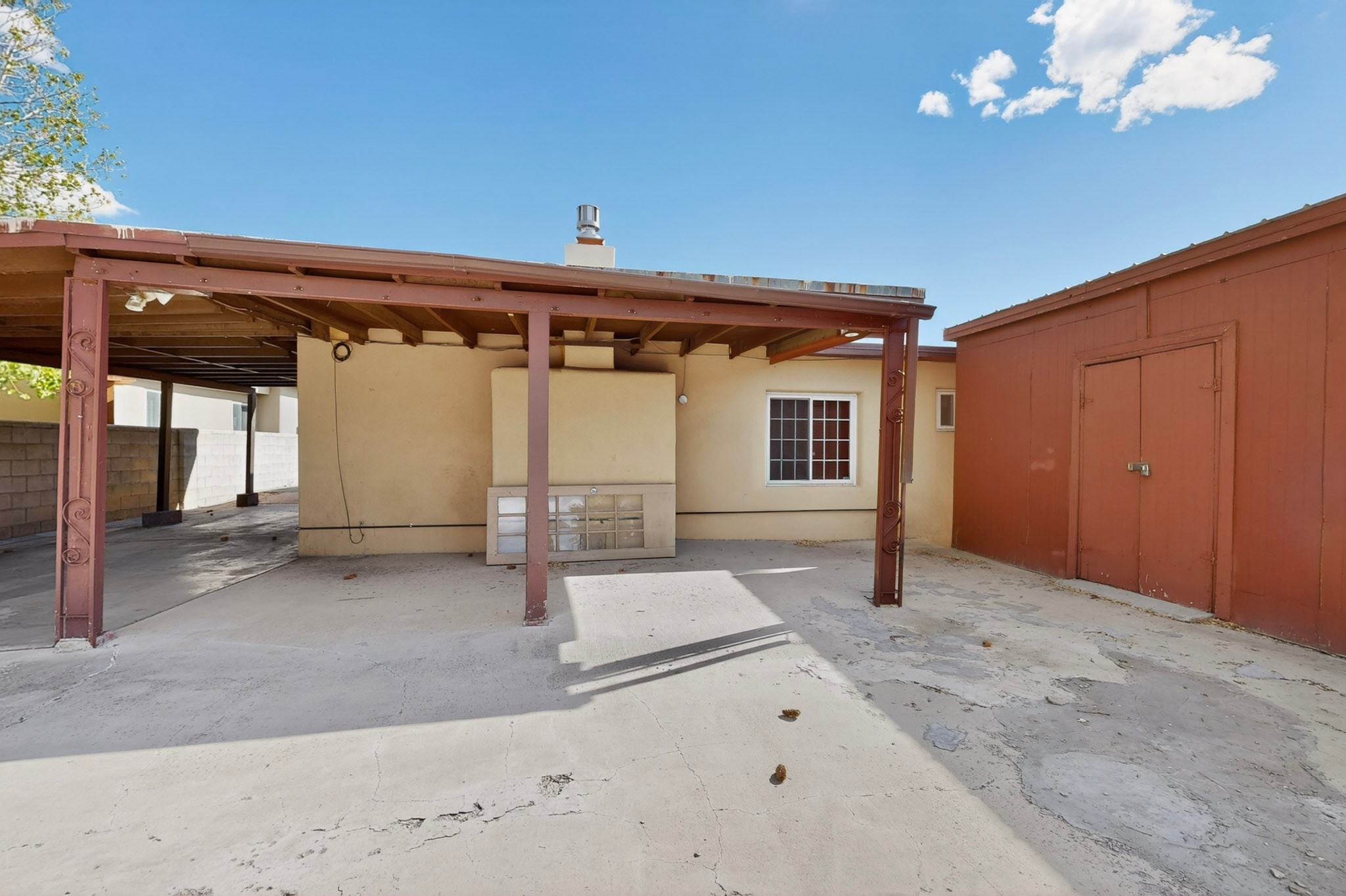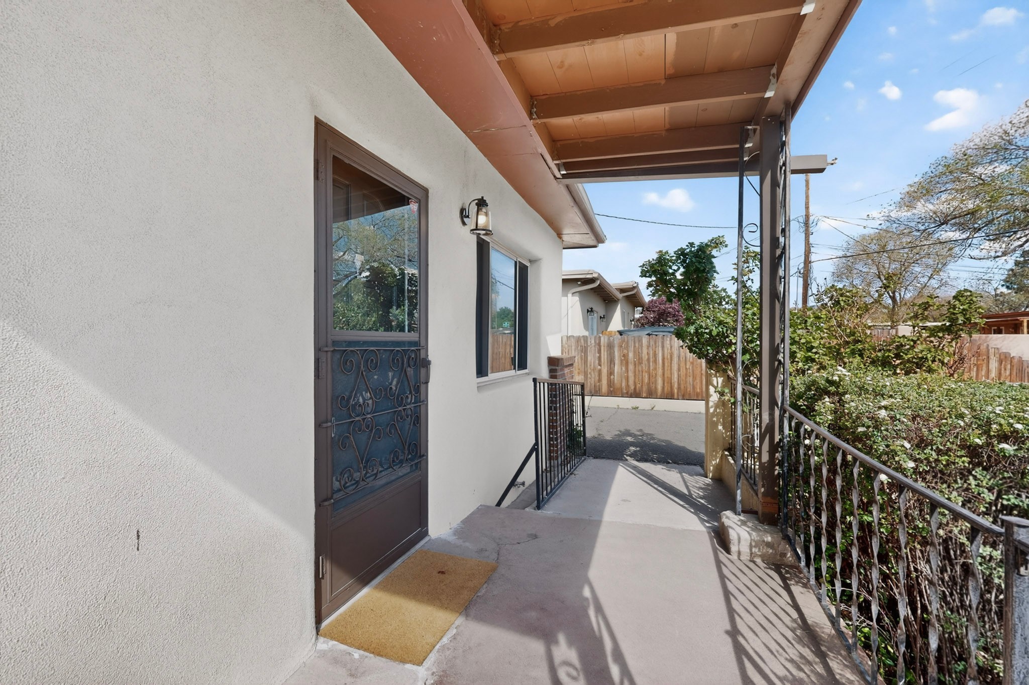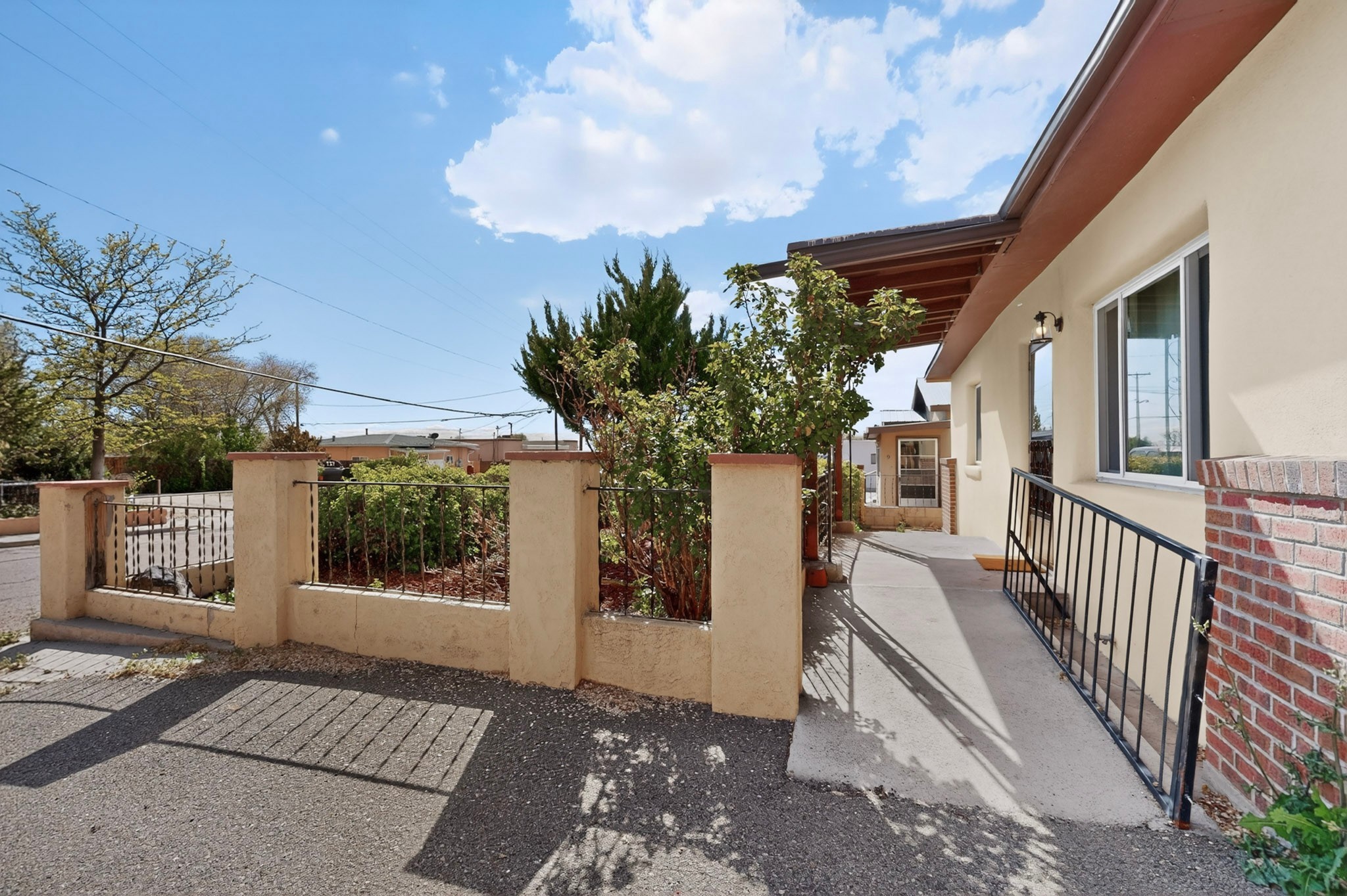 Rare opportunity to own a solid in-town adobe home in an established Santa Fe neighborhood on Columbia Street near St. Francis. This home offers 3 bedrooms and 2 bathrooms, combining classic charm and flexible living spaces. The home features beautiful hardwood floors, updated 200-amp electrical service, and laundry hook-ups for a gas dryer. A spacious addition with bath can serve as a primary suite, guest suite, family room or art studio. Set on a generous lot, the property includes fully fenced front and back yards, with mature landscaping including lilacs, roses and drought resistant spiraea bushes. The backyard offers a covered area perfect for entertaining and outside dining. There is also a detached workshop/garden shed ready for electrical upgrade, along with an additional storage unit. The neighborhood is welcoming, with long-term residents and a strong sense of community. Walk to Trader Joe's, Clafoutis, Salvador Perez Park and nearby medical, dental and veterinarian offices from this central location. This is a clean, solid, adobe home with timeless character and exceptional potential in a highly desirable in-town setting.