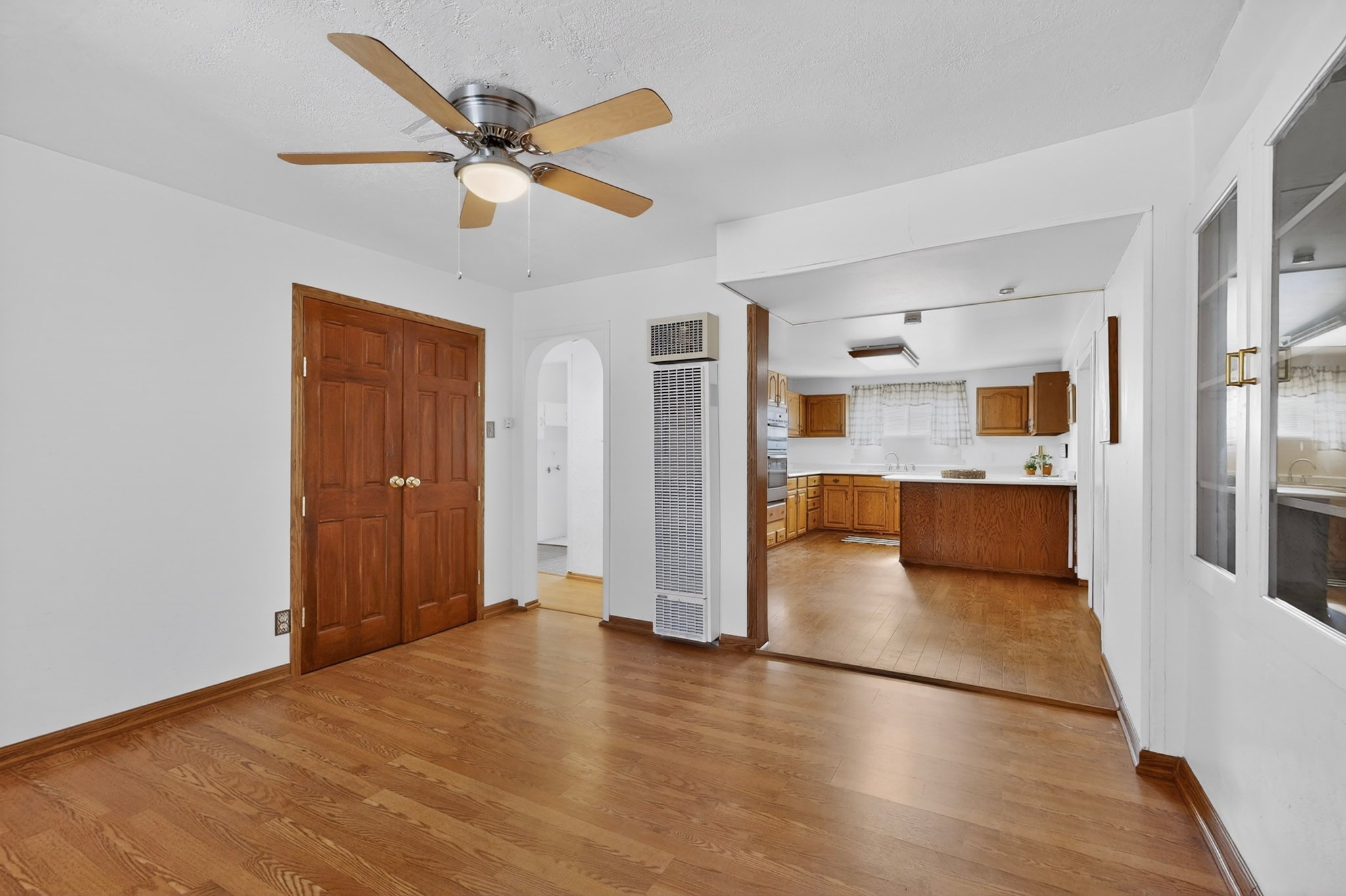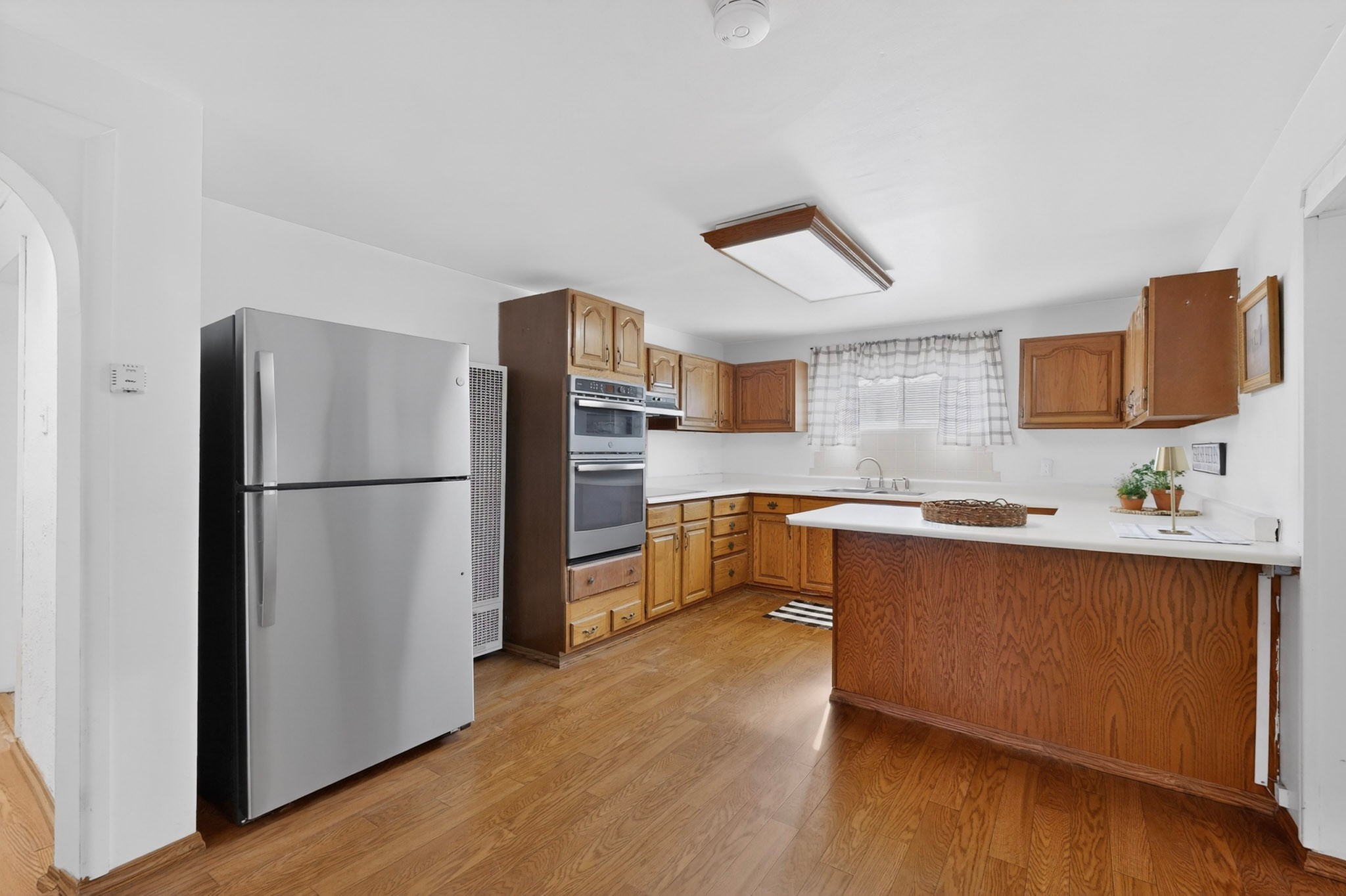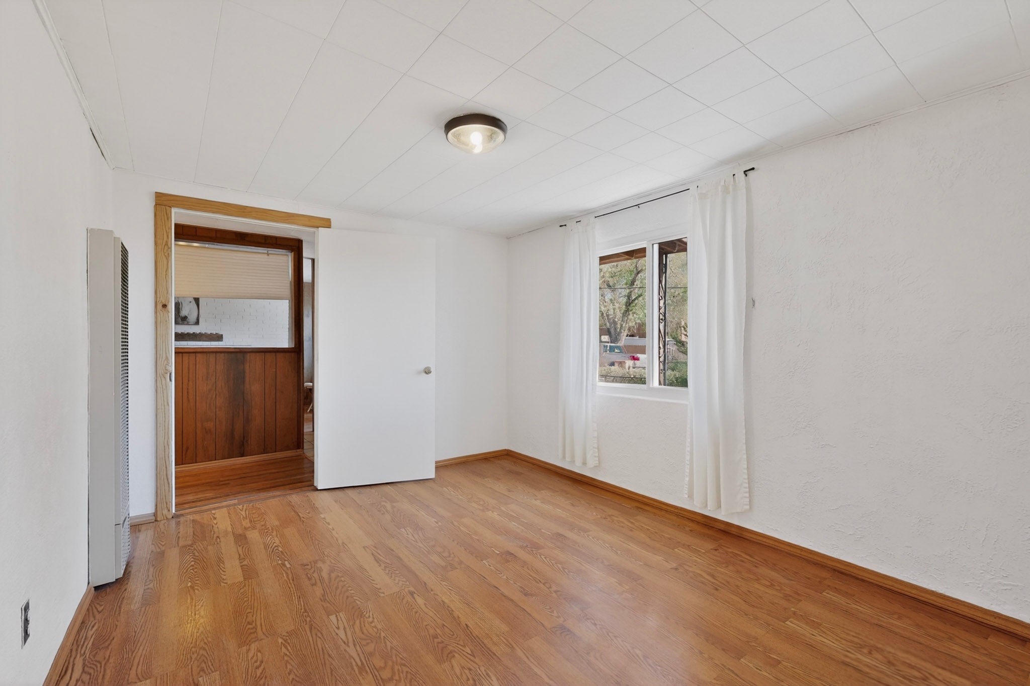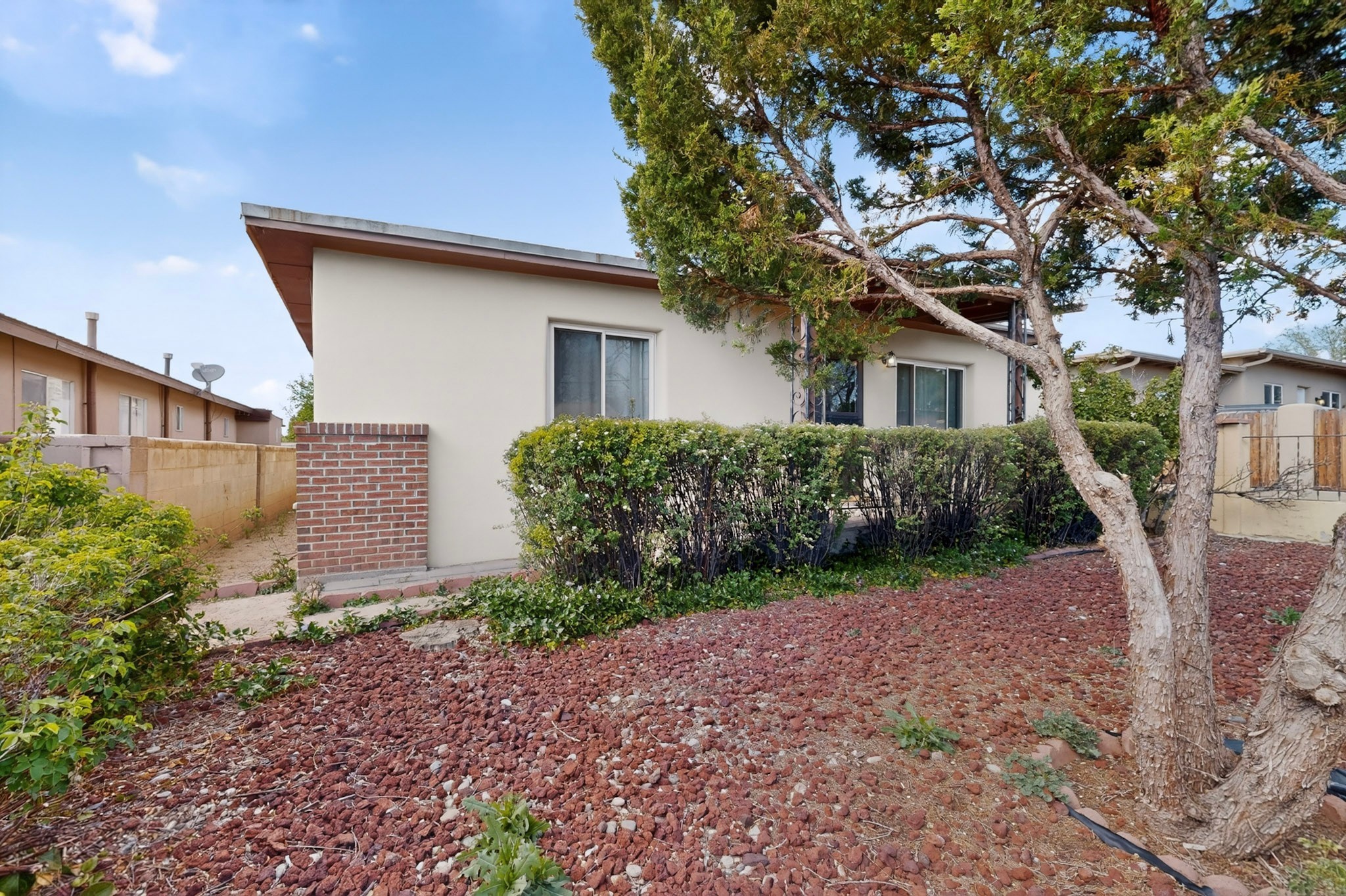 Rare opportunity to own a solid in-town adobe home in an established Santa Fe neighborhood on Columbia Street near St. Francis. This home offers 3 bedrooms and 2 bathrooms, combining classic charm and flexible living spaces. The home features beautiful hardwood floors, updated 200-amp electrical service, and laundry hook-ups for a gas dryer. A spacious addition with bath can serve as a primary suite, guest suite, family room or art studio. Set on a generous lot, the property includes fully fenced front and back yards, with mature landscaping including lilacs, roses and drought resistant spiraea bushes. The backyard offers a covered area perfect for entertaining and outside dining. There is also a detached workshop/garden shed ready for electrical upgrade, along with an additional storage unit. The neighborhood is welcoming, with long-term residents and a strong sense of community. Walk to Trader Joe's, Clafoutis, Salvador Perez Park and nearby medical, dental and veterinarian offices from this central location. This is a clean, solid, adobe home with timeless character and exceptional potential in a highly desirable in-town setting.