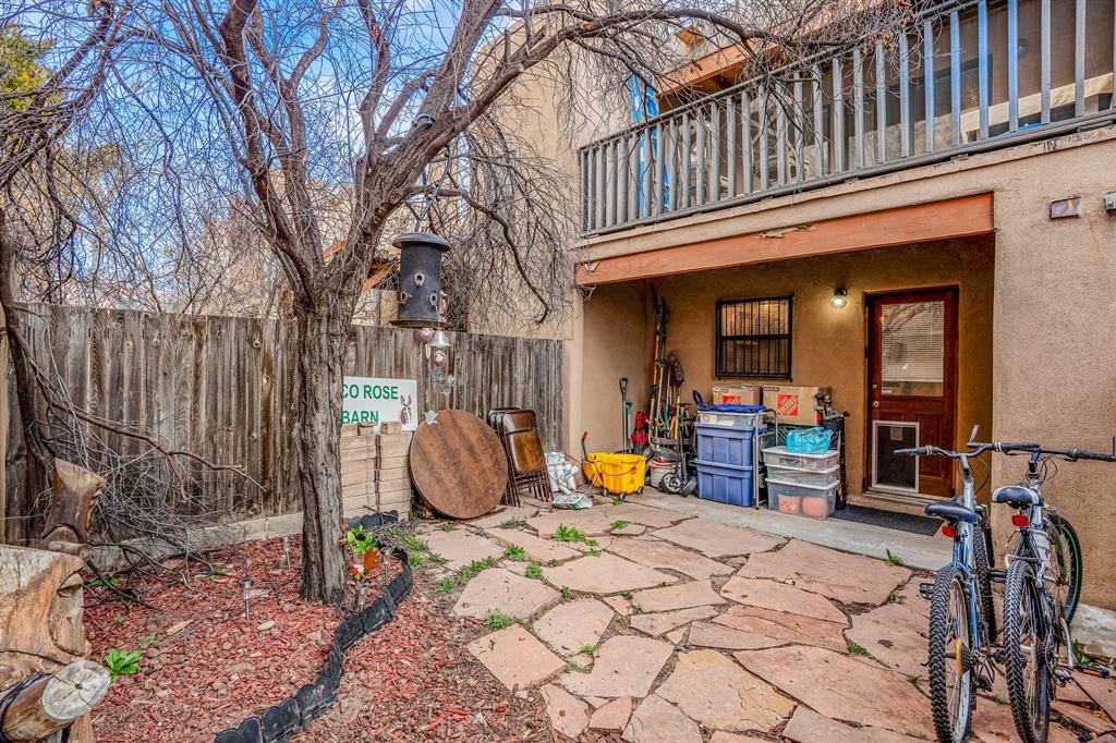 Welcome to this centrally located townhome in the heart of Santa Fe, where comfort, convenience, and charm meet. This inviting 2-bedroom, 2-bath home features an open floor plan that seamlessly connects the spacious living area with the dining and kitchen spaces, making it perfect for both relaxation and entertaining. A cozy kiva fireplace adds a touch of Southwestern warmth and character to the living room, creating a welcoming ambiance year-round. The primary bedroom is a true retreat, complete with its own private rear deck, offering a peaceful outdoor space to unwind and enjoy the serene surroundings. Below, a patio is ideal for pets, providing a safe and convenient area for them to play and explore. The second bedroom offers ample space, perfect for family, guests, or a home office. Situated next to the neighborhood park, this townhome offers easy access to a nature path that connects to other trails for those who want to use the trail City of SF trail system. Whether you're looking to enjoy the tranquility of your private space or explore the local community, this townhome is the perfect place to call home. Schedule your tour today!
