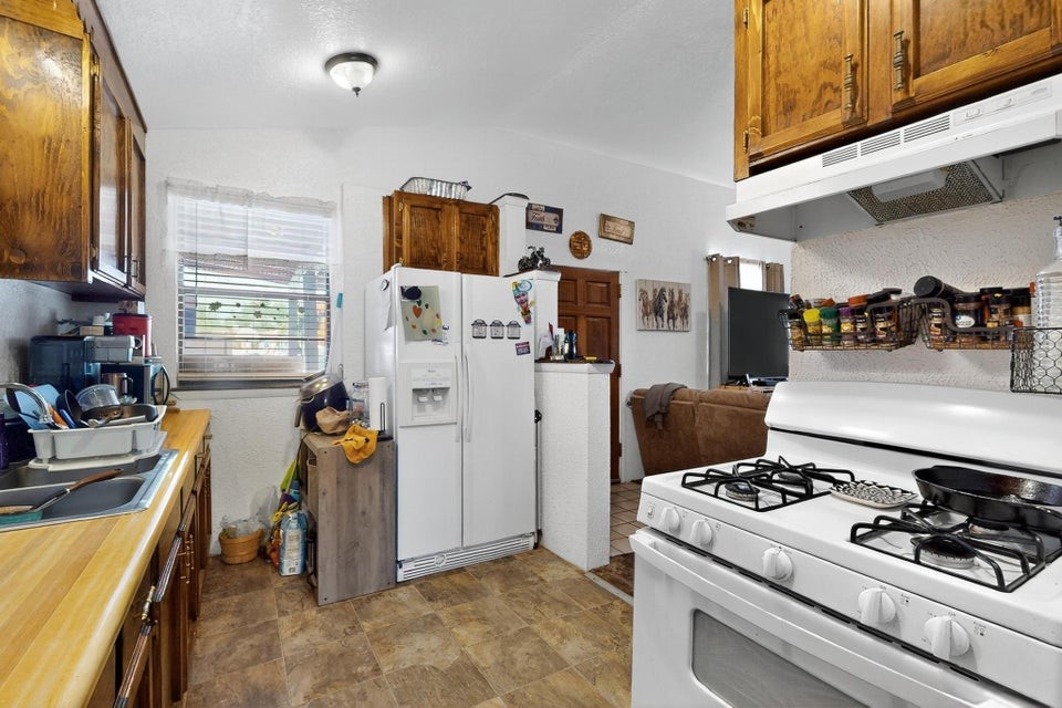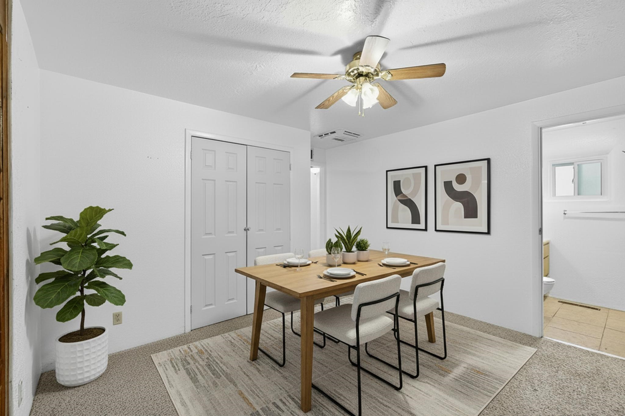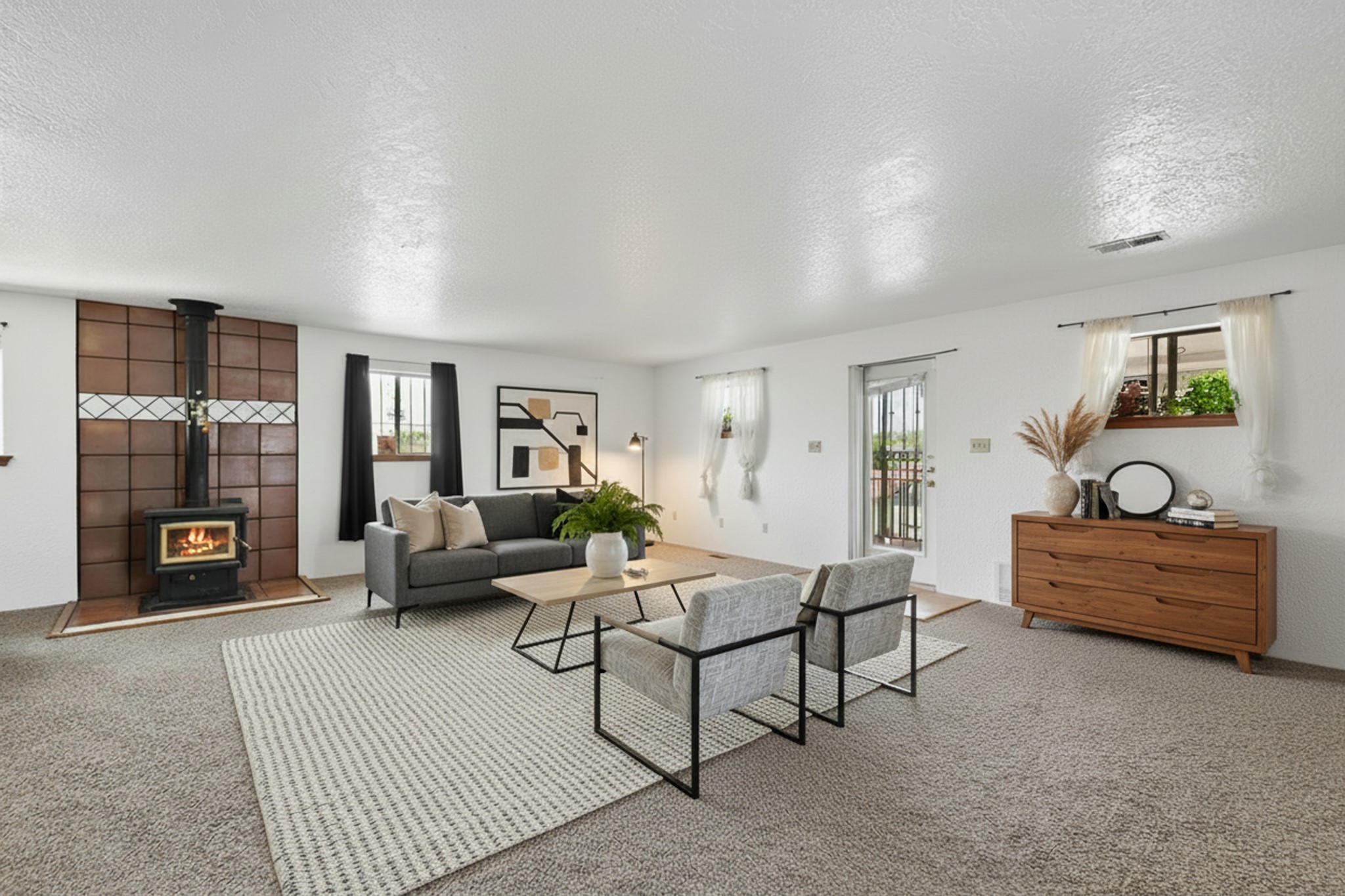 Motivated Seller!!! Impressive property on .4 acres features main residence, two charming casitas, plenty of parking spaces, covered storage and the list goes on making this an exceptional opportunity for those seeking rental income & the chance to enhance your financial portfolio. The main house offers ample living space, while the casitas provide additional versatility. A gated front courtyard welcomes you home & serves as a tranquil retreat for relaxation or social gatherings. Connected to the Agua Fria Community Water supply & city sewer.Approx 3,386 heated sq ft features three / four bedrooms, providing flexibility, along with three full bathrooms that ensure convenience. Two distinct living areas, two Kiva fireplaces and two wood stoves adds a touch of warmth and charm. A finished two-car heated garage complemented by covered parking for an additional two vehicles.The two charming individual casitas are fully equipped w/ kitchen, bathroom, bedroom and a comfortable living area. The kiva-style fireplace adds a touch of warmth and character. Both casitas are connected to a shared septic system and benefit from Agua Fria Community Water access.The detached heated flex room offers a versatile space that can be tailored to meet various needs, whether it serves as a home office, a dedicated workout area, or a recreational game room.A spacious separate pole barn provides ample room for parking and storage, perfect for housing all your outdoor equipment and recreational vehicles. Additionally, the existing chicken coop invites the possibility of raising chickens, adding a charming and sustainable element to your lifestyle. The garden is perfect for cultivating fresh produce. This combination of features not only enhances the property's appeal but also promotes a self-sufficient and fulfilling lifestyle.Potential buyers should inquire about the assumable 2.5% FHA loan.