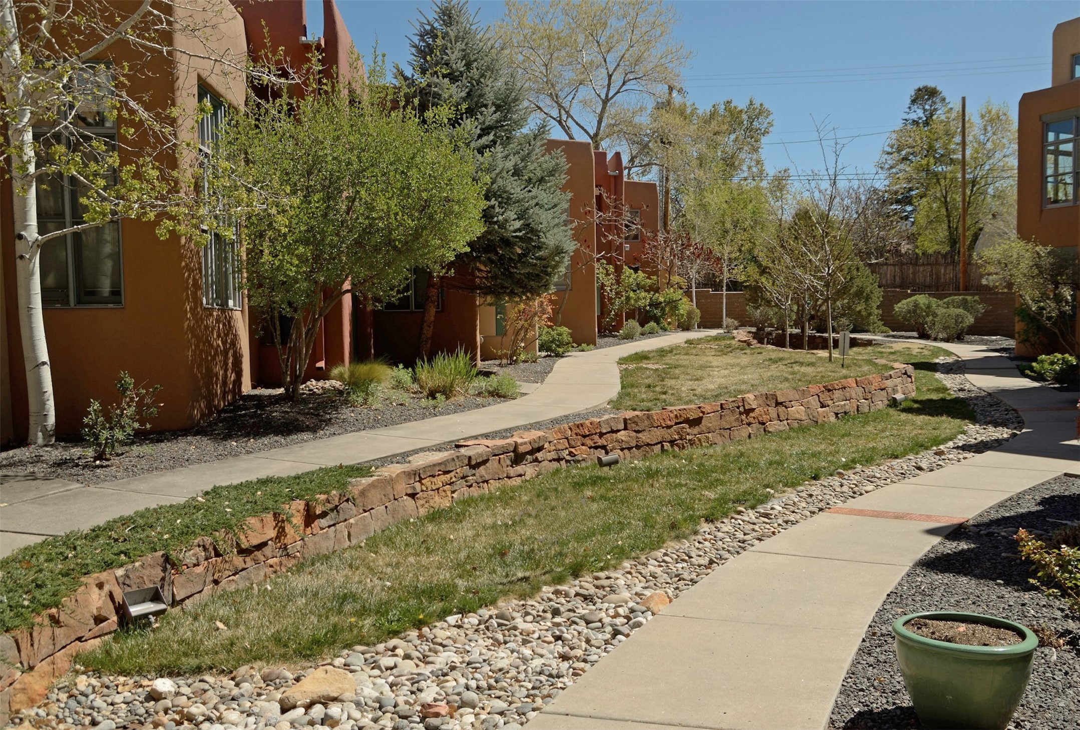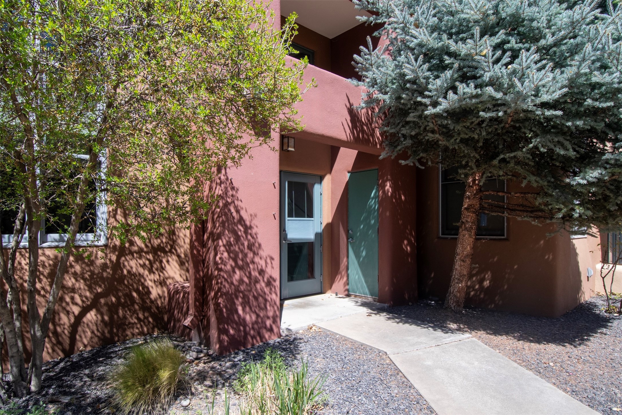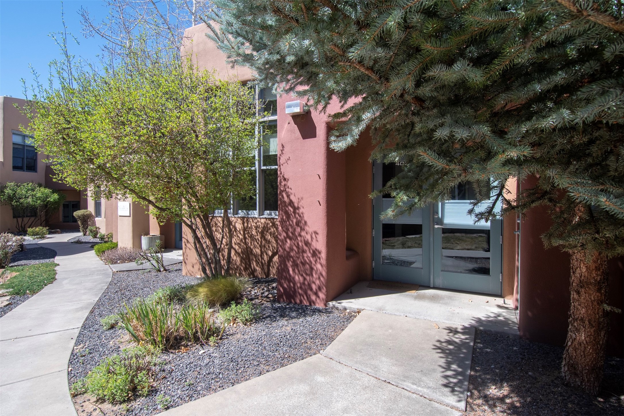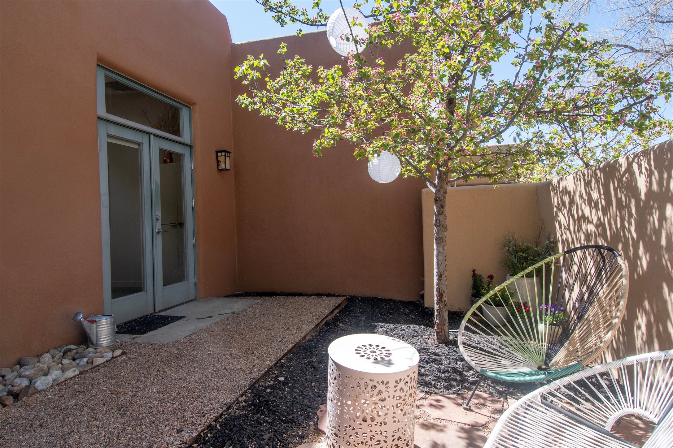 Located within the landscaped interior of the Lofts at Marquez Place, this bright and thoughtfully designed condo offers a unique blend of privacy, flexibility, and convenience. With a ground-level entrance and no unit above, the space lives quietly and comfortably. A rare highlight is the private, walled courtyard, ideal for outdoor living, pets, or a separate entrance for live/work use. Inside, the layout is both functional and distinctive. The kitchen is arranged in two connected areas, with additional storage and prep space tucked away, while a custom live-edge cherry and sapele wood counter by Boxcar Woody anchors the main living area. Stairs lead to the lofted sleeping space, with built-in storage below. The primary bedroom is located on the main level, with direct access to the courtyard and an adjacent bath. Zoned C-2, with short-term rentals permitted pursuant to the condominium declaration, the property offers flexibility for residential, creative, or professional use. All of this is just minutes from the Railyard, downtown, restaurants, and shopping, making it a well-located option for those seeking both convenience and versatility in Santa Fe.