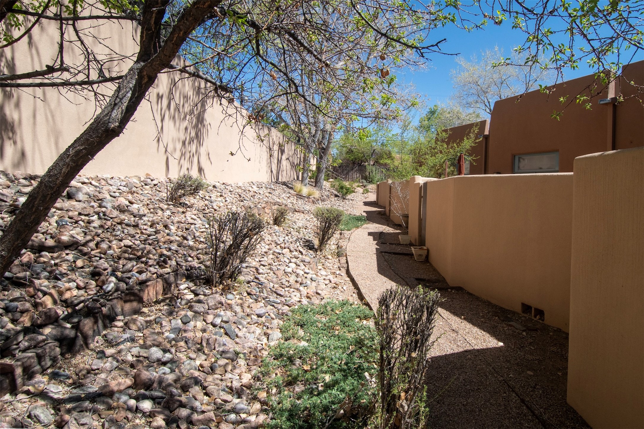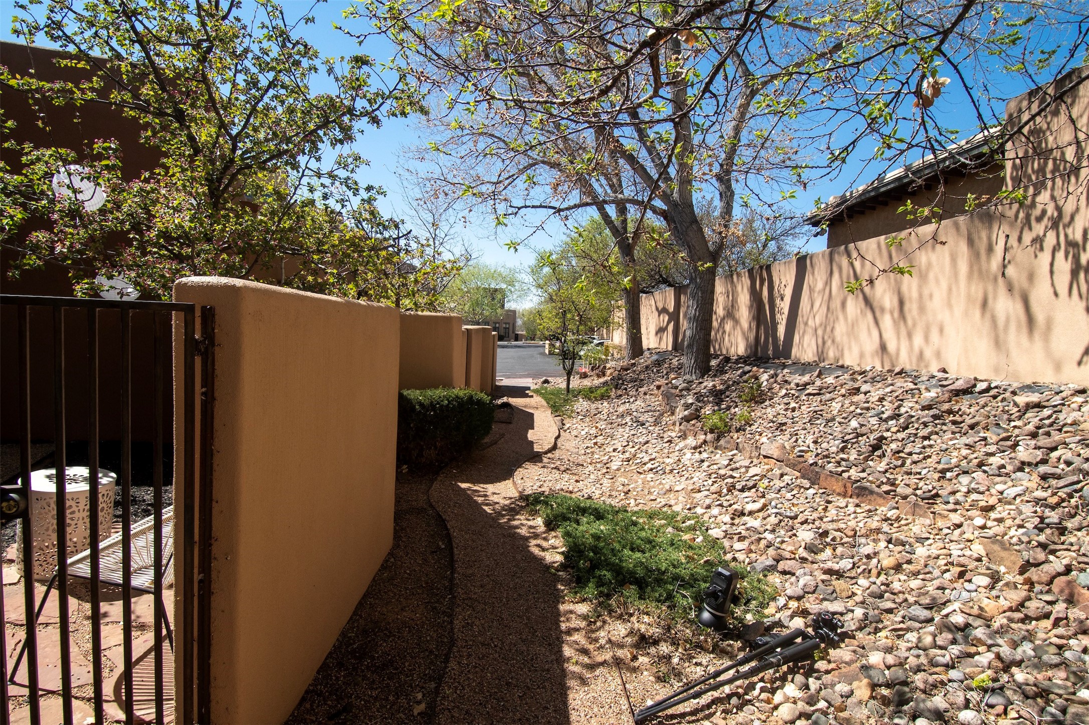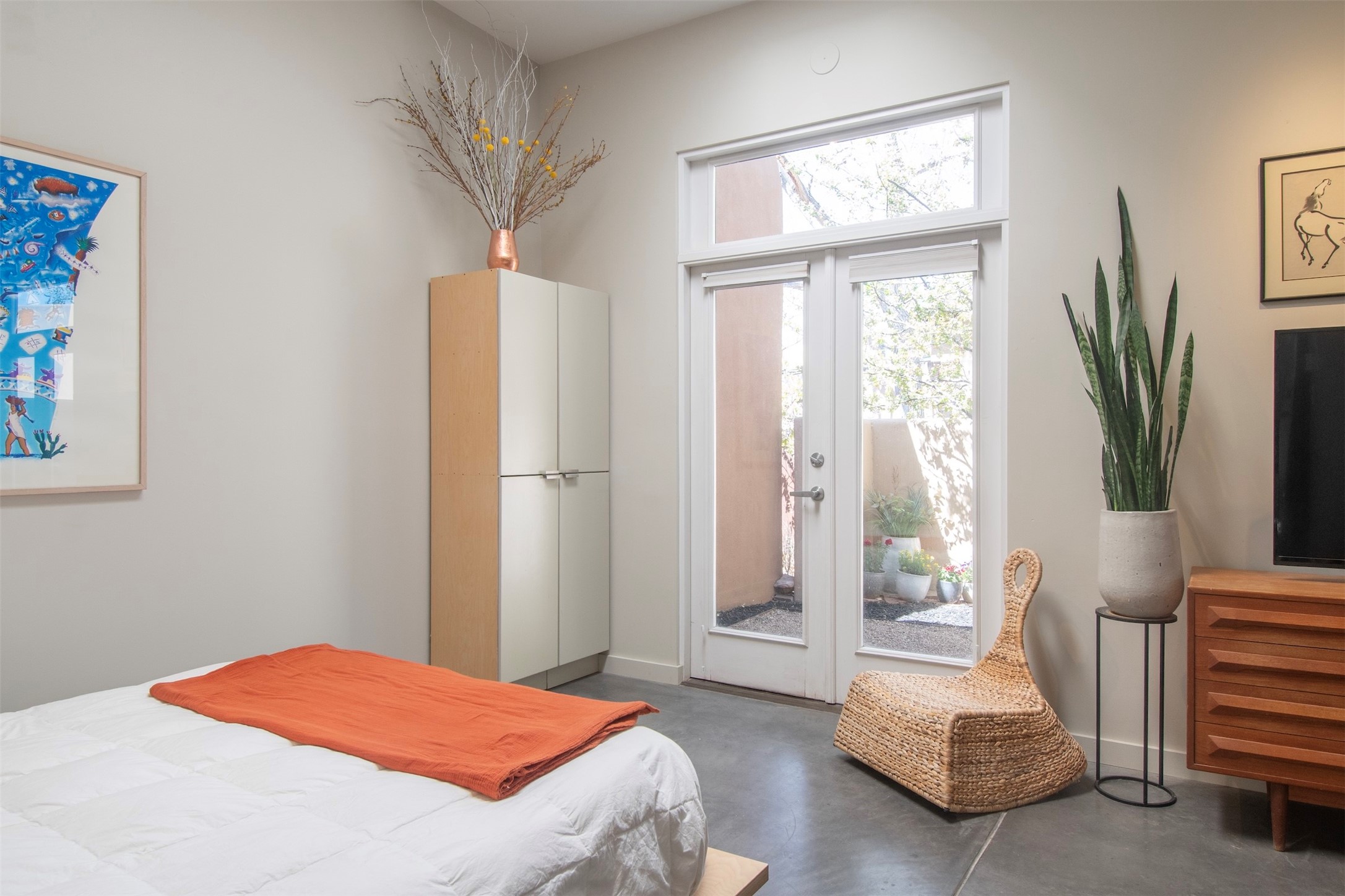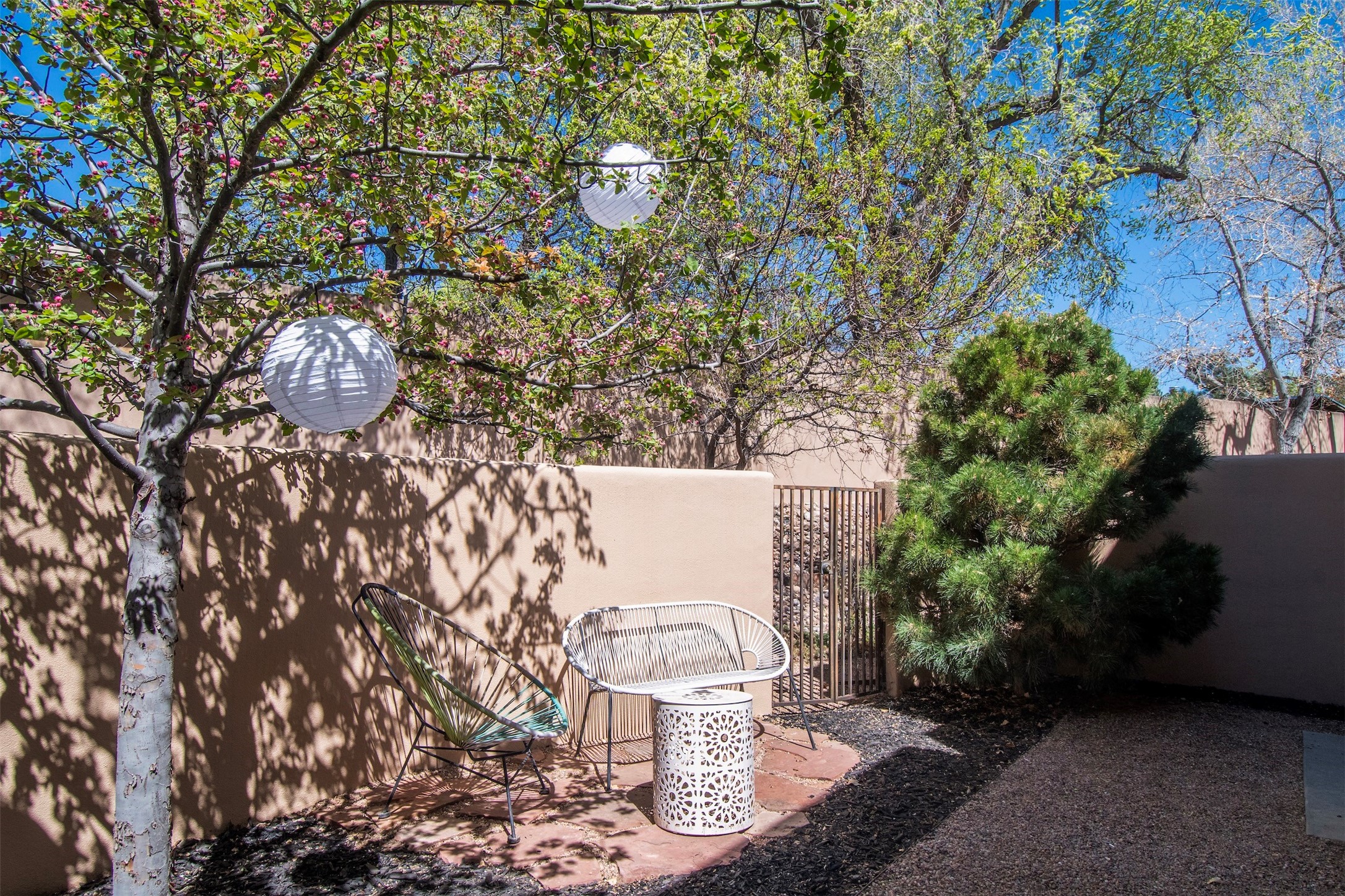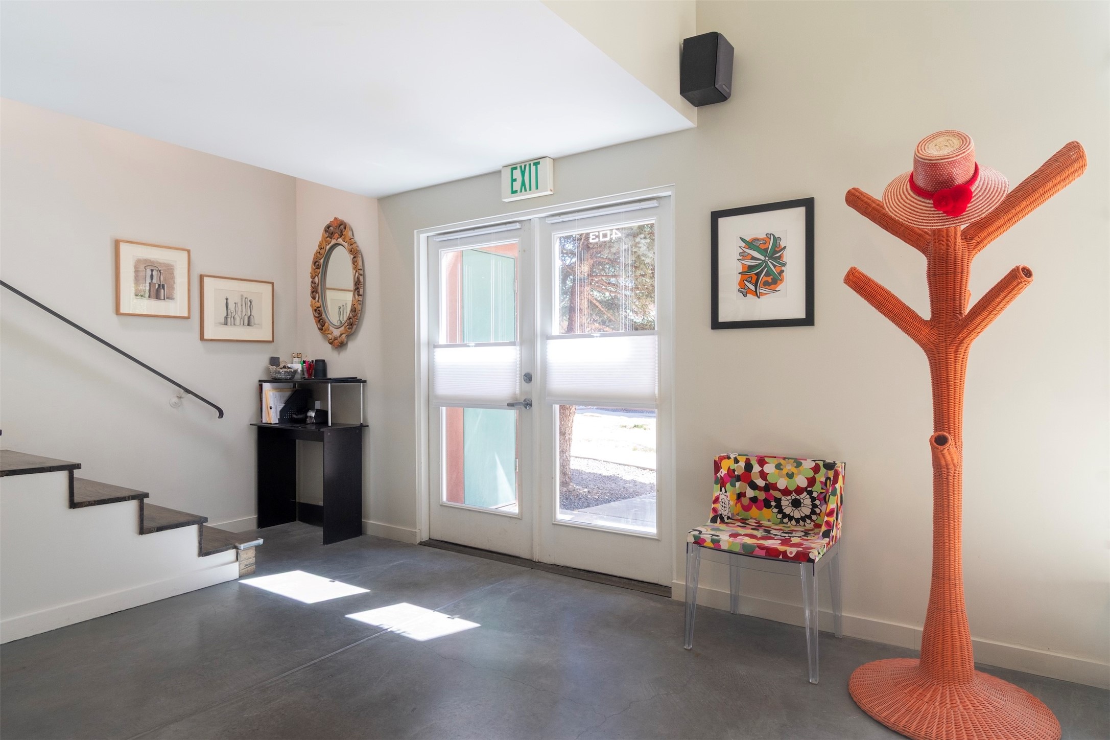 Located within the landscaped interior of the Lofts at Marquez Place, this bright and thoughtfully designed condo offers a unique blend of privacy, flexibility, and convenience. With a ground-level entrance and no unit above, the space lives quietly and comfortably. A rare highlight is the private, walled courtyard, ideal for outdoor living, pets, or a separate entrance for live/work use. Inside, the layout is both functional and distinctive. The kitchen is arranged in two connected areas, with additional storage and prep space tucked away, while a custom live-edge cherry and sapele wood counter by Boxcar Woody anchors the main living area. Stairs lead to the lofted sleeping space, with built-in storage below. The primary bedroom is located on the main level, with direct access to the courtyard and an adjacent bath. Zoned C-2, with short-term rentals permitted pursuant to the condominium declaration, the property offers flexibility for residential, creative, or professional use. All of this is just minutes from the Railyard, downtown, restaurants, and shopping, making it a well-located option for those seeking both convenience and versatility in Santa Fe.