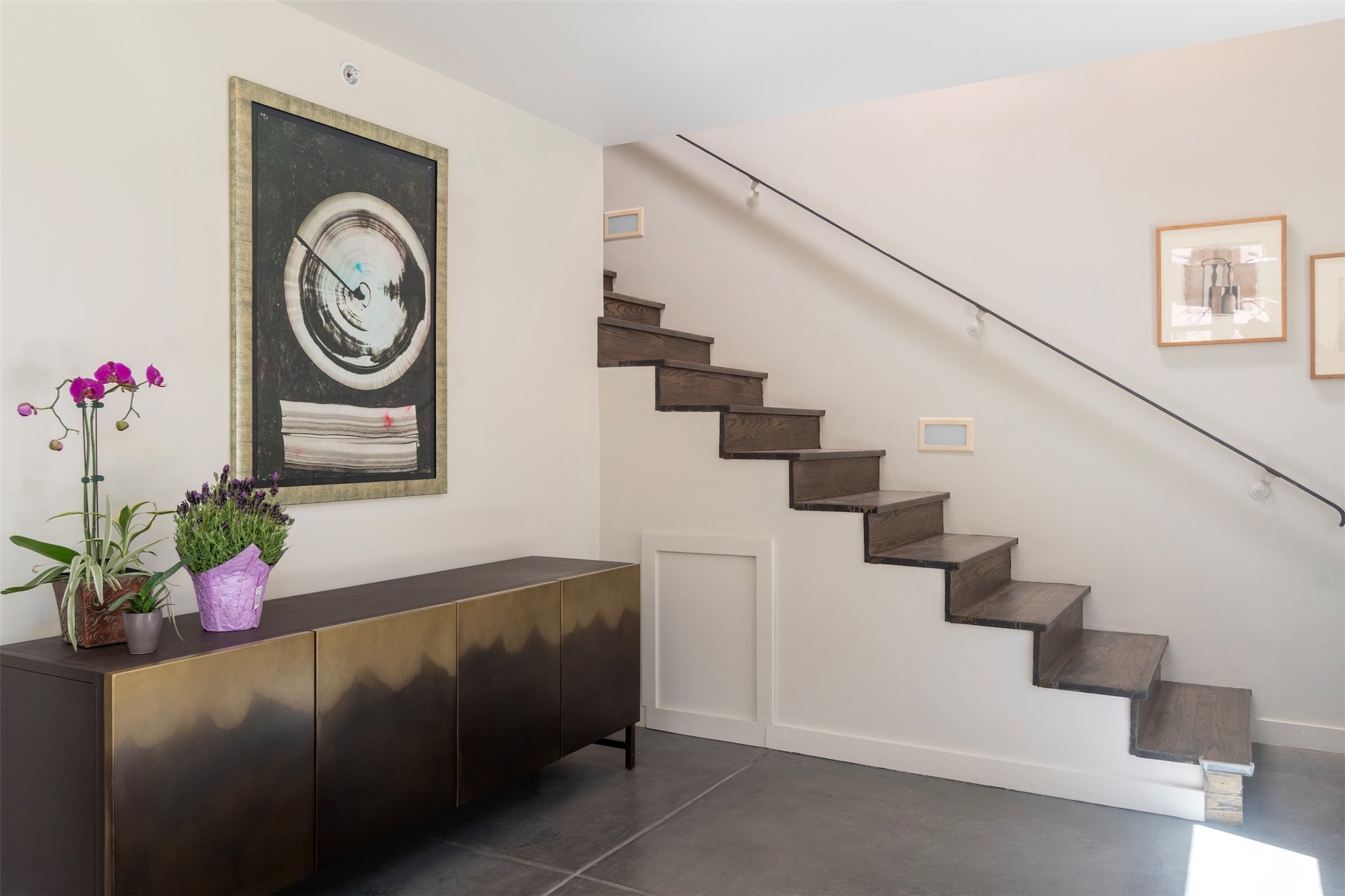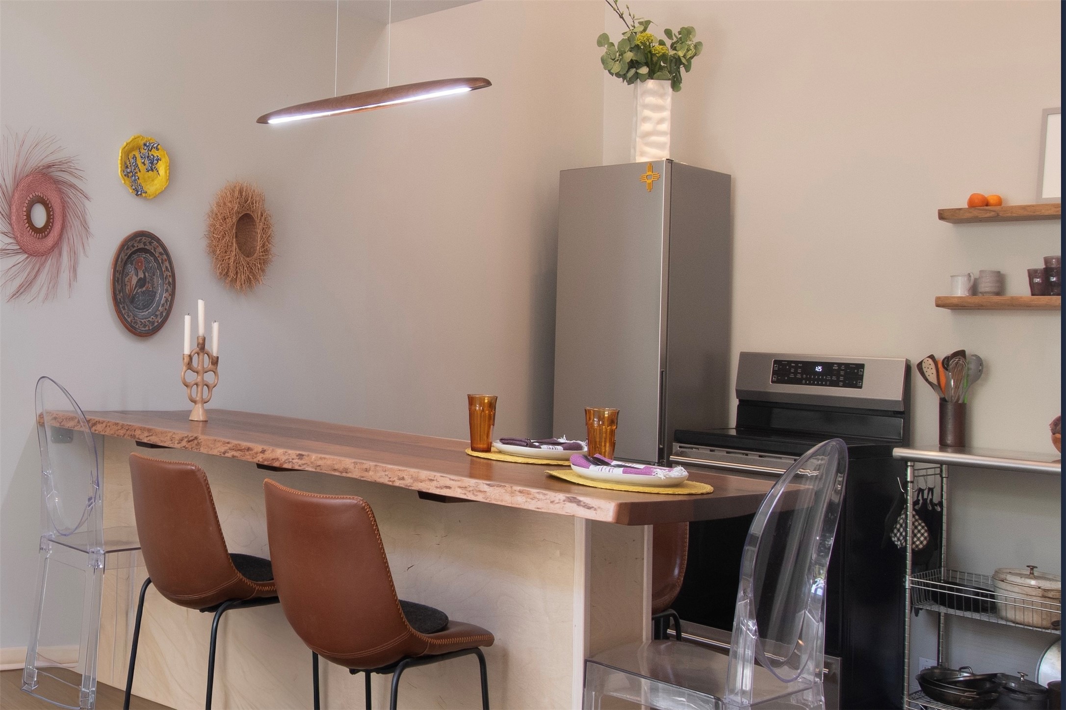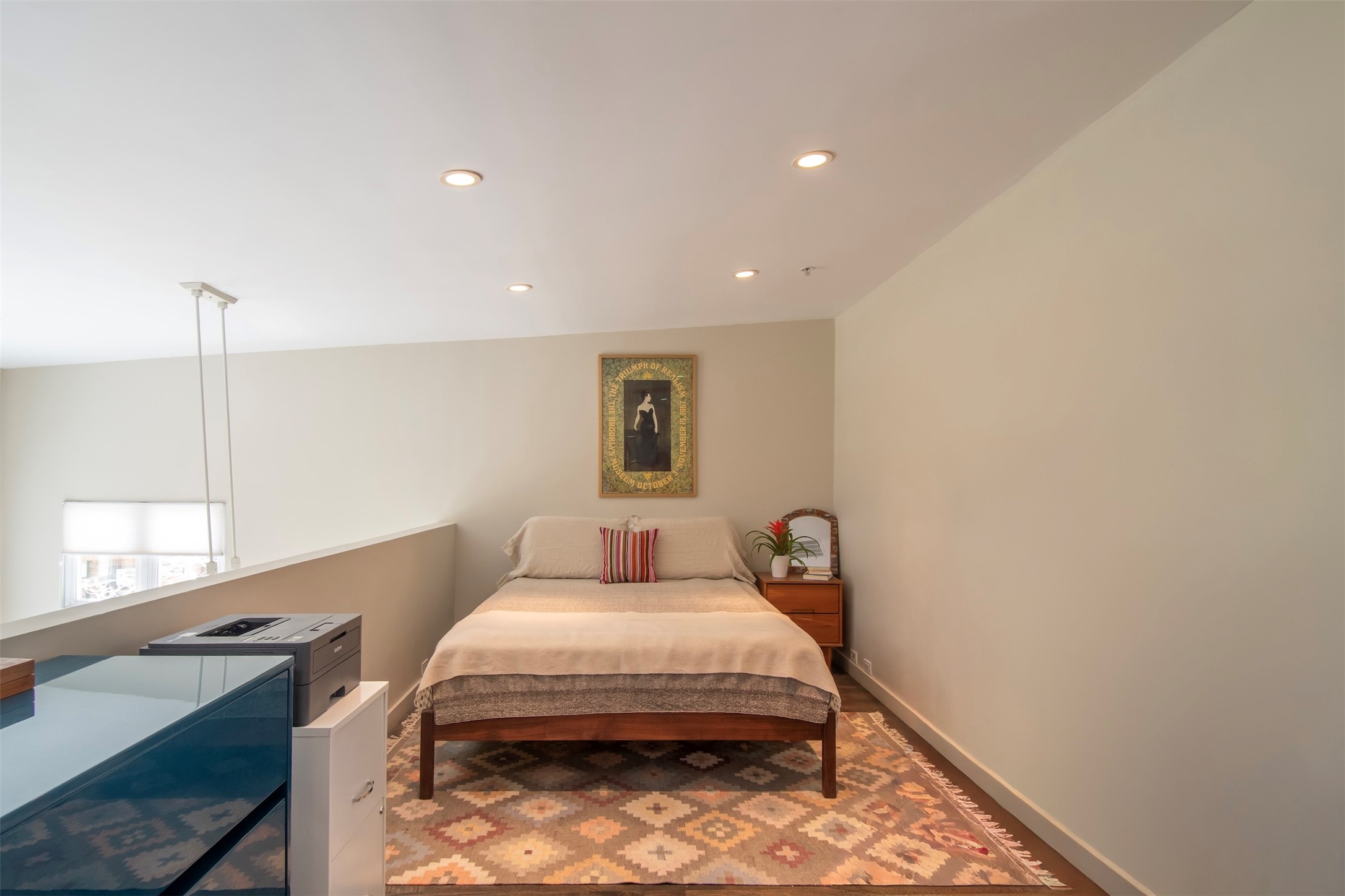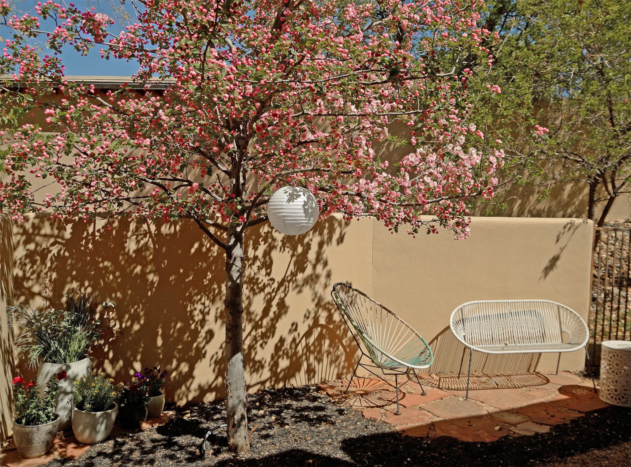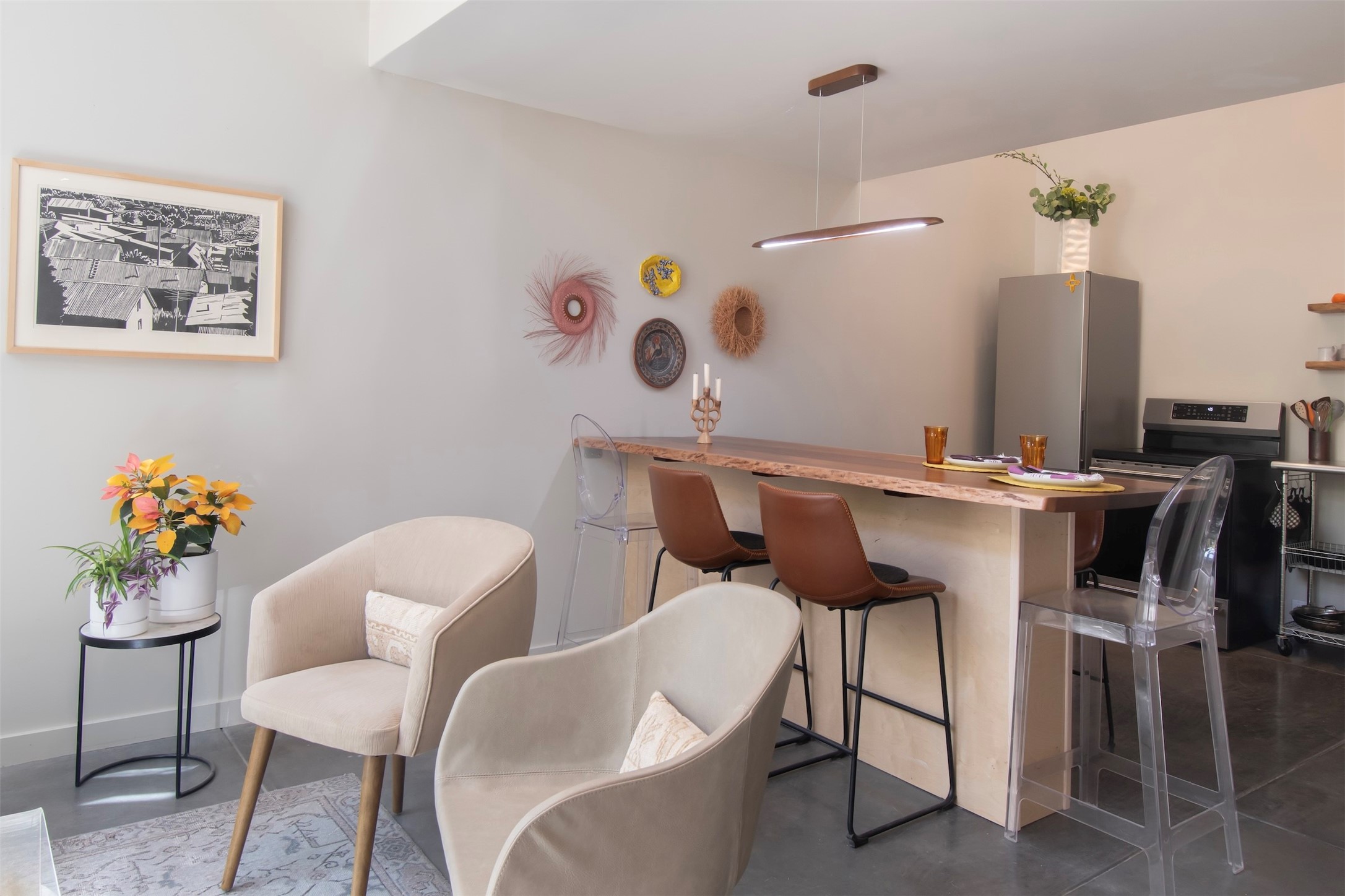 Located within the landscaped interior of the Lofts at Marquez Place, this bright and thoughtfully designed condo offers a unique blend of privacy, flexibility, and convenience. With a ground-level entrance and no unit above, the space lives quietly and comfortably. A rare highlight is the private, walled courtyard, ideal for outdoor living, pets, or a separate entrance for live/work use. Inside, the layout is both functional and distinctive. The kitchen is arranged in two connected areas, with additional storage and prep space tucked away, while a custom live-edge cherry and sapele wood counter by Boxcar Woody anchors the main living area. Stairs lead to the lofted sleeping space, with built-in storage below. The primary bedroom is located on the main level, with direct access to the courtyard and an adjacent bath. Zoned C-2, with short-term rentals permitted pursuant to the condominium declaration, the property offers flexibility for residential, creative, or professional use. All of this is just minutes from the Railyard, downtown, restaurants, and shopping, making it a well-located option for those seeking both convenience and versatility in Santa Fe.